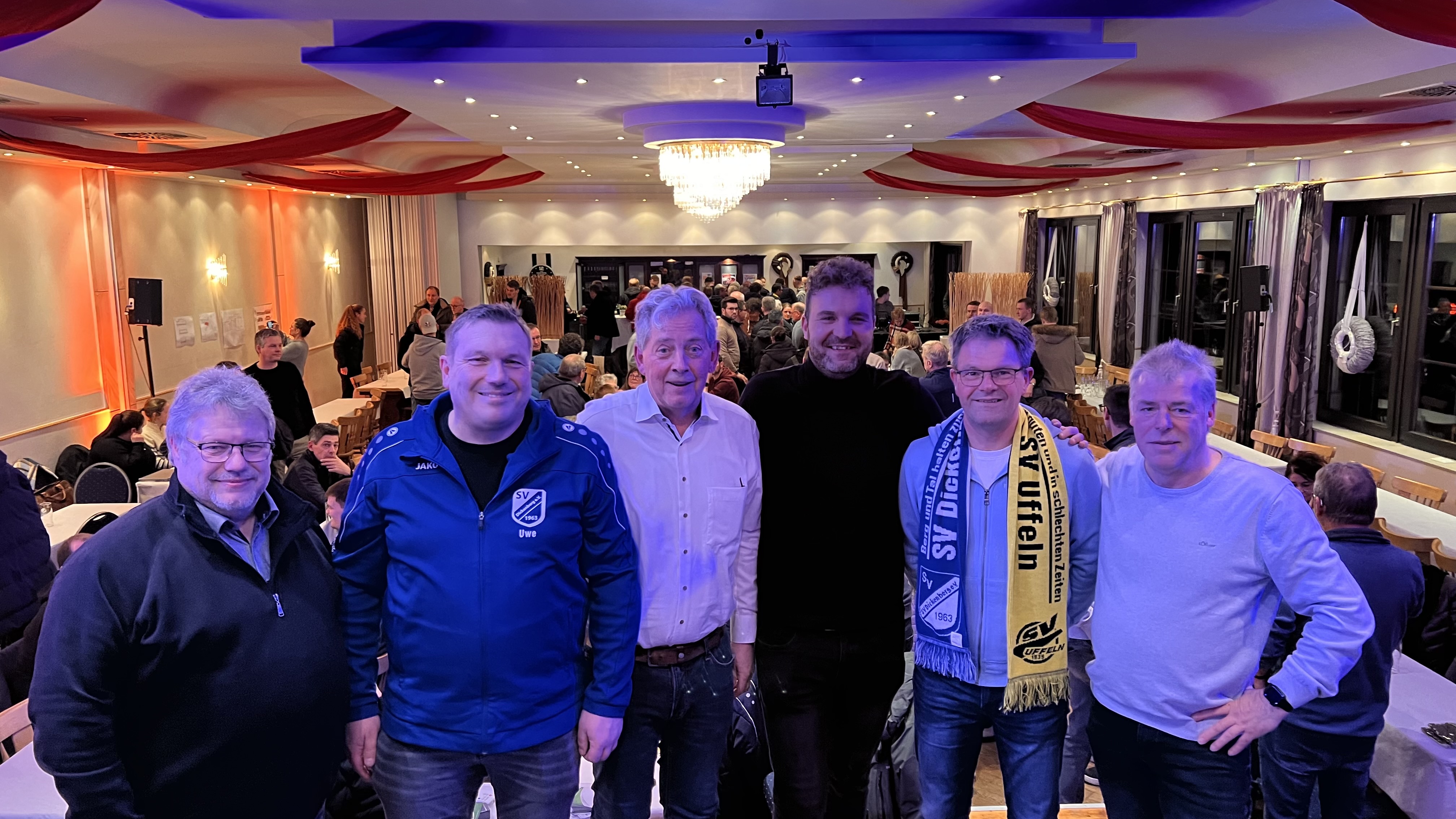 Ein weiterer Meilenstein beim Neubau ist erreicht. Am Donnerstag den 4. September folgten rund 200 Mitglieder der Einladung des Vorstandes und besuchten die Veranstaltung im Waldstadion. Einmal mehr zeigte sich, wie groß das Interesse der Dickenberger in Bezug auf den Neubau ist. Die Geschäftsleitung der Firma Woitzel, sowie die Nachbarschaft der Heinrich-Brockmann-Straße hatte für diesen Tag einen Richtkranz gebunden, der dann am höchsten Punkt des neuen Gebäude befestigt wurde. Christoph Pelster, Chef der Firma Holzbau Pelster und verantwortlicher Zimmermann, ließ es sich nicht nehmen den Richtspruch zu verlesen.