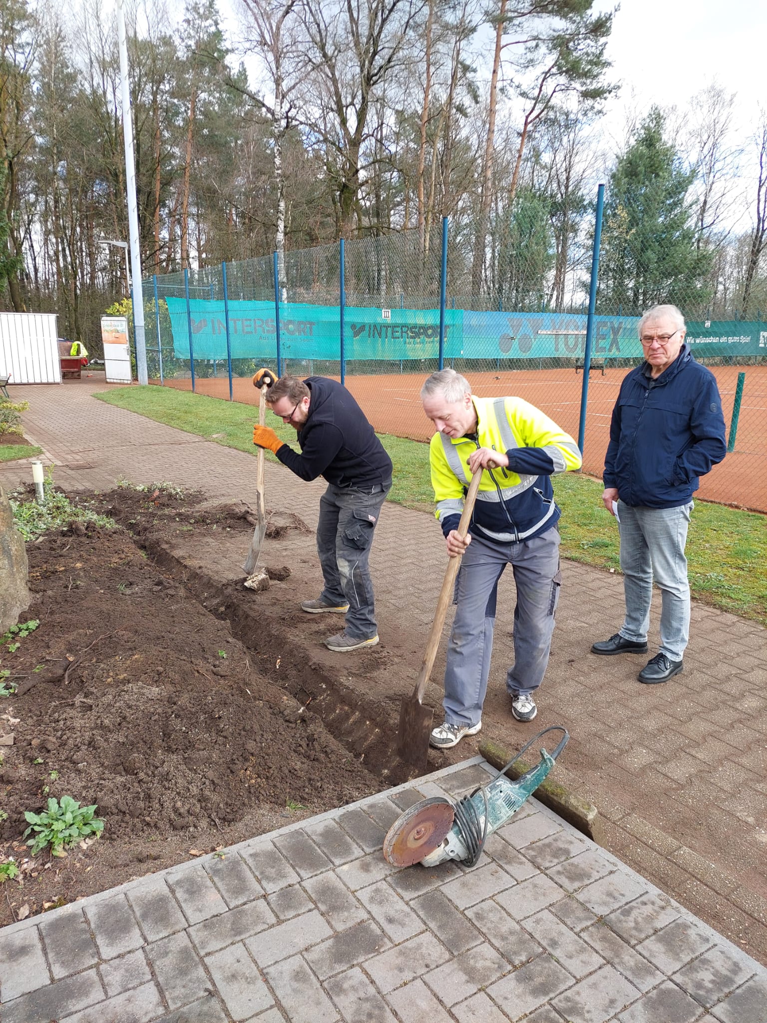 Auf und um der Tennisanlage fanden vor der Saisoneröffnung mehrere Arbeitseinsätze statt. Zum einen standen die alljährlichen Tätigkeiten wie Plätze herstellen, den Gartenbereich vom Winterschlaf befreien, Beete neu bepflanzen etc. an. Zum anderen wurde der Randbereich des Beetes neu eingefasst und das Tennisheim von innen gestrichen. Nun strahlt das Tennisheim von innen wieder schön. An alle Helfer ein großes Dankeschön! Ohne Euch hätten die Maßnahmen nur geplant, aber nicht auch umgesetzt werden können. Wer noch seine Arbeitsstunden leisten möchte/muss findet bestimmt noch Sachen die gemacht werden müssen. Ansonsten kann auch immer Wolfgang Göcke angesprochen werden ☺.