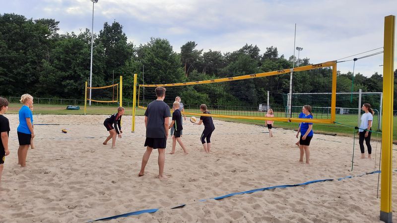 Die Jugendmannschaft der Volleyballer nutzt in den warmen Sommermonaten ebenso die Beachfelder im Dickenberger Waldstadion wie alle anderen Mannschaften auch. Es ist halt schon was Besonderes unter freiem Himmel im warmen Sand Volleyball zu spielen. Die Mannschaft von Trainerin Sarah Ratersmann umfasst zurzeit 12 Spieler/innen, die in den Sommermonaten immer dienstags von 18:00 – 19:30 Uhr auf den Beachplätzen trainieren.