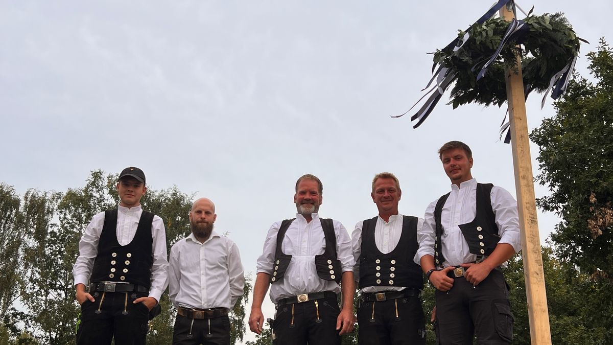 Ein weiterer Meilenstein beim Neubau ist erreicht. Am Donnerstag den 4. September folgten rund 200 Mitglieder der Einladung des Vorstandes und besuchten die Veranstaltung im Waldstadion. Einmal mehr zeigte sich, wie groß das Interesse der Dickenberger in Bezug auf den Neubau ist. Die Geschäftsleitung der Firma Woitzel, sowie die Nachbarschaft der Heinrich-Brockmann-Straße hatte für diesen Tag einen Richtkranz gebunden, der dann am höchsten Punkt des neuen Gebäude befestigt wurde. Christoph Pelster, Chef der Firma Holzbau Pelster und verantwortlicher Zimmermann, ließ es sich nicht nehmen den Richtspruch zu verlesen.