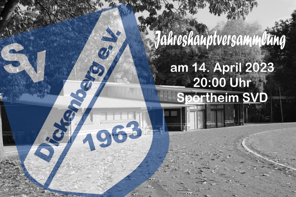 Auf der Agenda stehen neben den üblichen Berichten aus dem Vorstand, den Abteilungen und den Finanzen natürlich auch wieder Neuwahlen an. Für 2023 steht das 60 jährige Jubiläum des SV Dickenberg an. Berichtet wird in der Versammlung auch über die bisherigen Planungen zur Jubiläumsfeier.
